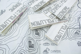 Sérigraphie réalisée avec des encres dont les pigments sont prélevés directement au sein du parc (terre argileuse, fruits rouges, charbon).